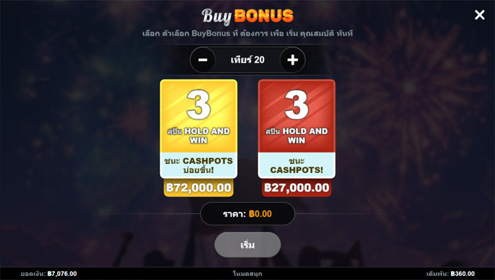 | Bonus | เปิดใช้งาน Hold and Win Bonus |
