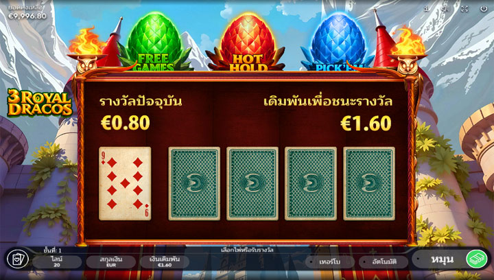 จุดเด่นของสล็อต 3 Royal Dracos คือระบบ Lucky Time ที่ไข่มังกรจะตื่นขึ้นแบบสุ่มเมื่อสะสมโทเค็นพอ: