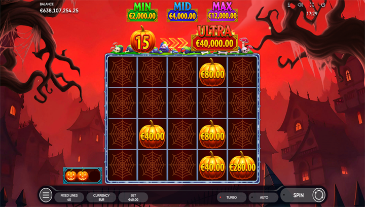• สัญลักษณ์สูง (High Paying): สัญลักษณ์จ่ายสูงสุด (x Bet)แม่มดแดงสาวสวย50xกบเขียว25xแมงมุมม่วง20xหมวกแม่มด15x