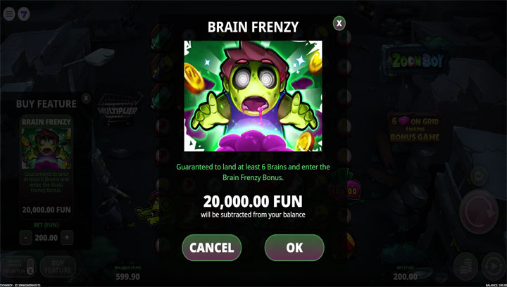 สำหรับผู้เล่นที่ไม่อยากรอการหมุนแบบสุ่ม Zoomboy เปิดโอกาสให้ ซื้อเข้าโบนัสทันที โดยการลงทุนเพิ่มขึ้นเล็กน้อยเพื่อแลกกับการเข้าสู่โหมด Brain Frenzy โดยไม่ต้องสะสมสมองเอง