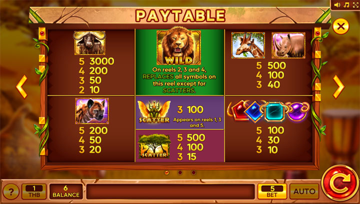 4. โบนัสเกม: ฟีเจอร์โบนัสที่ให้คุณเลือกสัตว์ป่าในเกม ซึ่งจะมีรางวัลพิเศษที่ซ่อนอยู่ในแต่ละตัวสัตว์ ช่วยให้คุณได้รับรางวัลเพิ่มเติมจากการเล่น