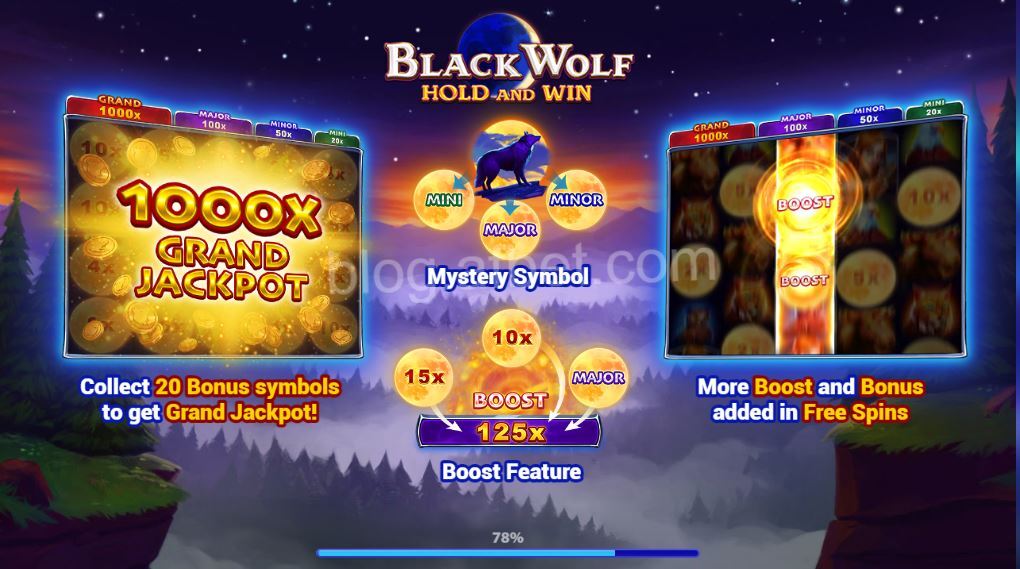 BLACK WOLF เป็นเกมสล็อตออนไลน์ มาในรูปแบบทีมของหมาป่าหอนในคืนพระจันทร์เต็มดวงโดยมีตัวละครหลักที่มีนักธนูหญิงสาวไล่ล่าหมาป่า โดยเกมนี้ได้มีผู้พัฒนาจากบริษัท booongo ที่สร้างสรรค์เกมสล็อตครบรสส่งตรงจากต่างประเทศ ตัวเกมสล็อตนี้จะมาในรูปแบบของสล็อตวีดีโอ 5 รีล 4 แถวมีเพย์ไลน์ทั้งหมด 25 เพย์ไลน์เเละยังมีแจ็คพอตใหญ่ x1000 เท่า เป็นเกมสล็อตที่สามารถรวบรวม สัญลักษณ์ดวงจันทร์เพื่อที่จะเข้าสู่โหมดโบนัสเกมได้ และยังมีสัญลักษณ์ต่างๆและอัตราจ่ายแตกต่างกัน สัญลักษณ์หมาป่า จะเป็นสัญลักษณ์ Wild ที่สามารถแทนที่ได้ทุกสัญลักษณ์ในวงล้อ และจะปรากฏขึ้นที่ใดก็ได้ในวงล้อ จะไม่สามารถแทนที่สัญลักษณ์ Scatter ได้โดยสัญลักษณ์ Scatter นั้นจะต้องได้รับ 3 สัญลักษณ์ขึ้นไป จะปรากฏขึ้นที่ใดก็ได้ในวงล้อจะทำการได้รับฟรีสปิน 8 ครั้ง และอยู่ในโหมดฟรีสปินนี้สามารถรับ สัญลักษณ์ Scatter เพิ่มเติมได้ หากได้รับสัญลักษณ์ ฺBonus โดยจะมีจะเป็น สัญลักษณ์พระจันทร์ โดยจะต้องรวบรวม 6 สัญลักษณ์ขึ้นไป โดยจะปรากฏขึ้นที่ใดก็ได้ในวงล้อจะทำการเข้าสู่โบนัสเกมโดยจะมีการ RE Spin 3 ครั้ง และจะได้รับสัญลักษณ์พระจันทร์หล่นลงมาจากด้านบน โดยจะแสดงยอดเงินและรางวัลแจ็คพ็อตต่างๆให้ท่านจนกว่าสปิน 3 ครั้งนะจะหมดลงไปและมีสัญลักษณ์พิเศษที่เรียกว่า สัญลักษณ์ Boots โดยจะเป็นสัญลักษณ์ที่ไม่ว่าจะอยู่ในโหมดฟรีสปินหรือโหมดธรรมดา สามารถรับได้และจะเปลี่ยนแปลงเงินให้ท่านทันที